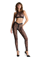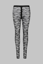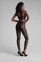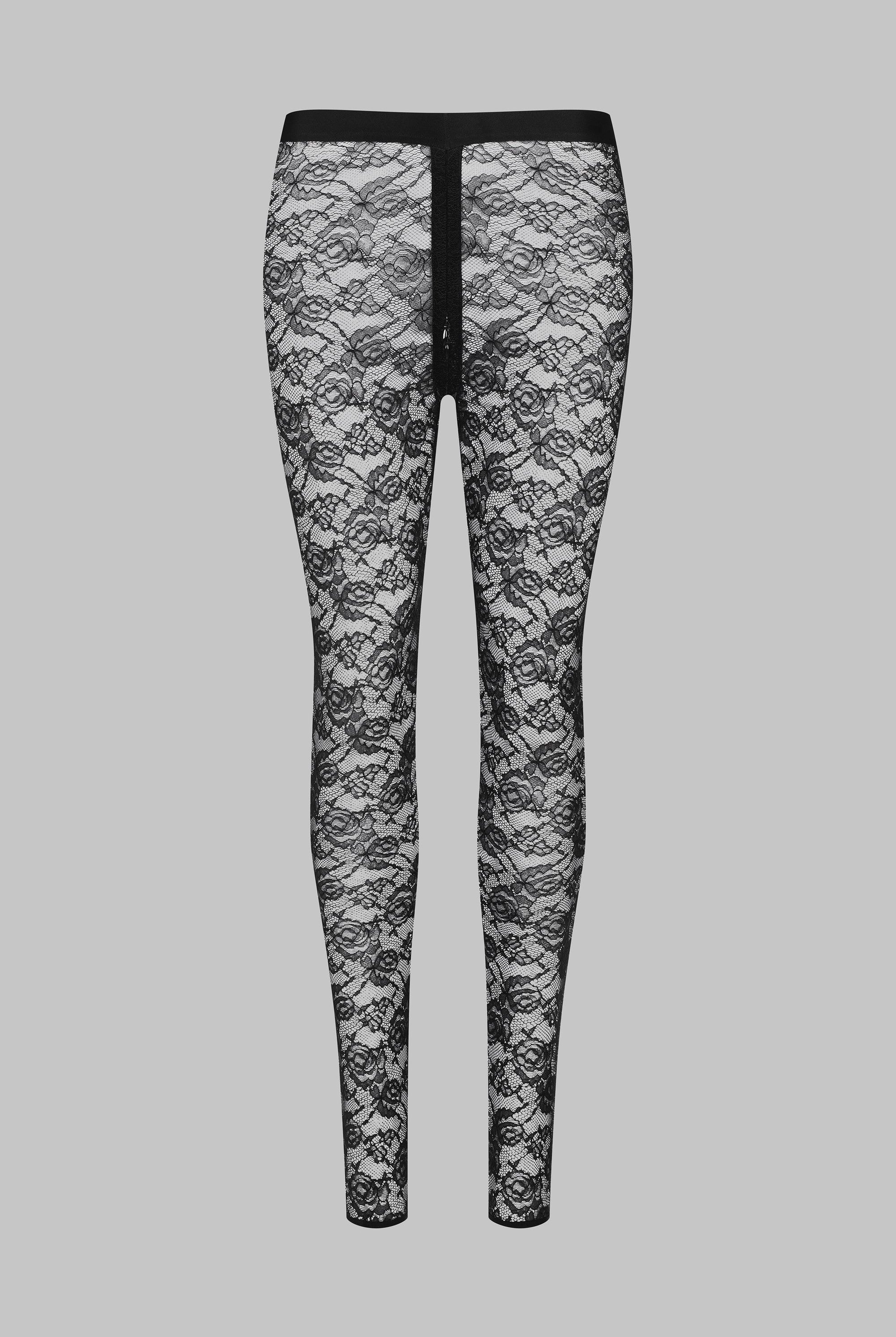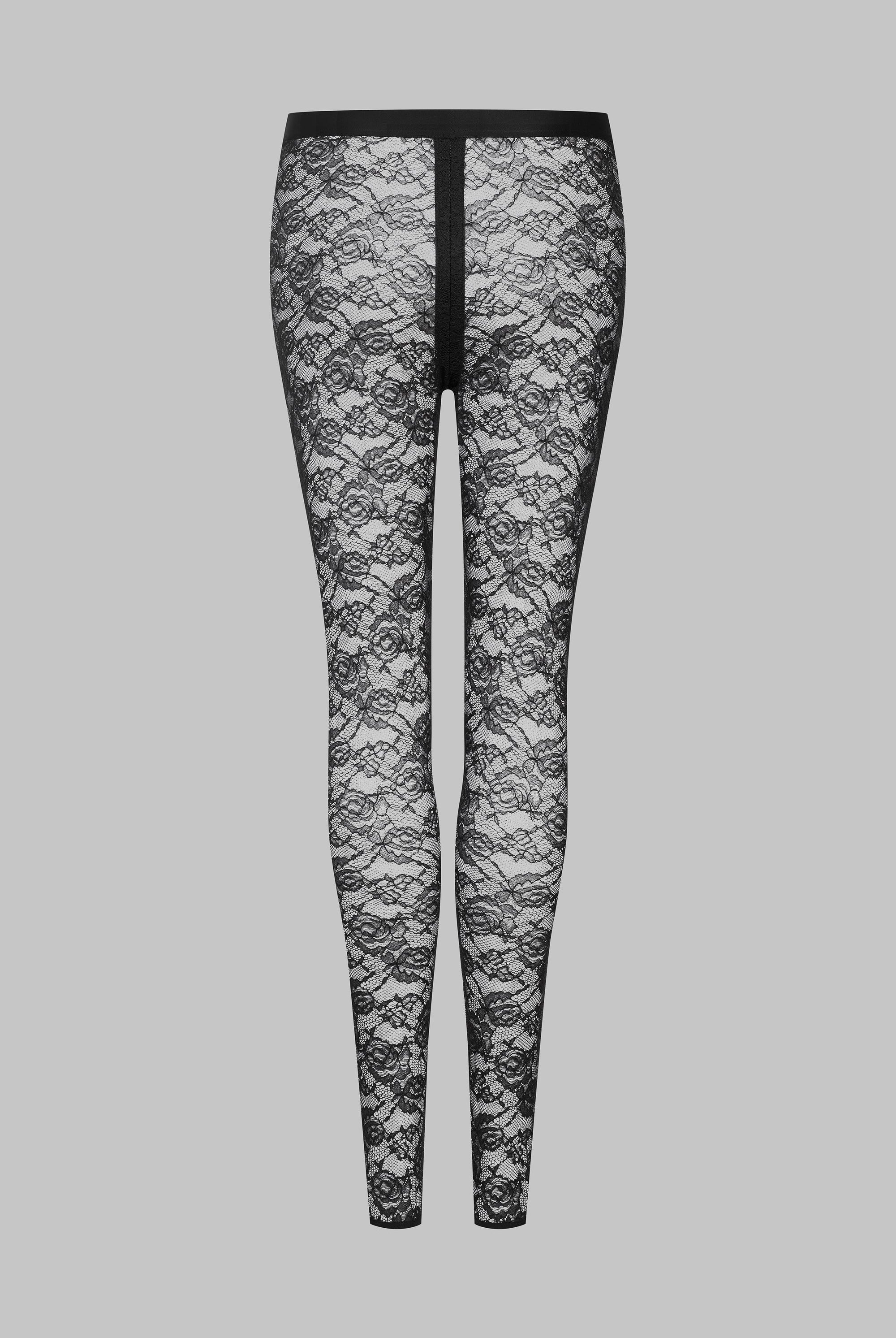 These leggings feature mostly recycled openwork lace. A wide waistband edged with a flat elasticated trim emphasises the curves for an '80s style.